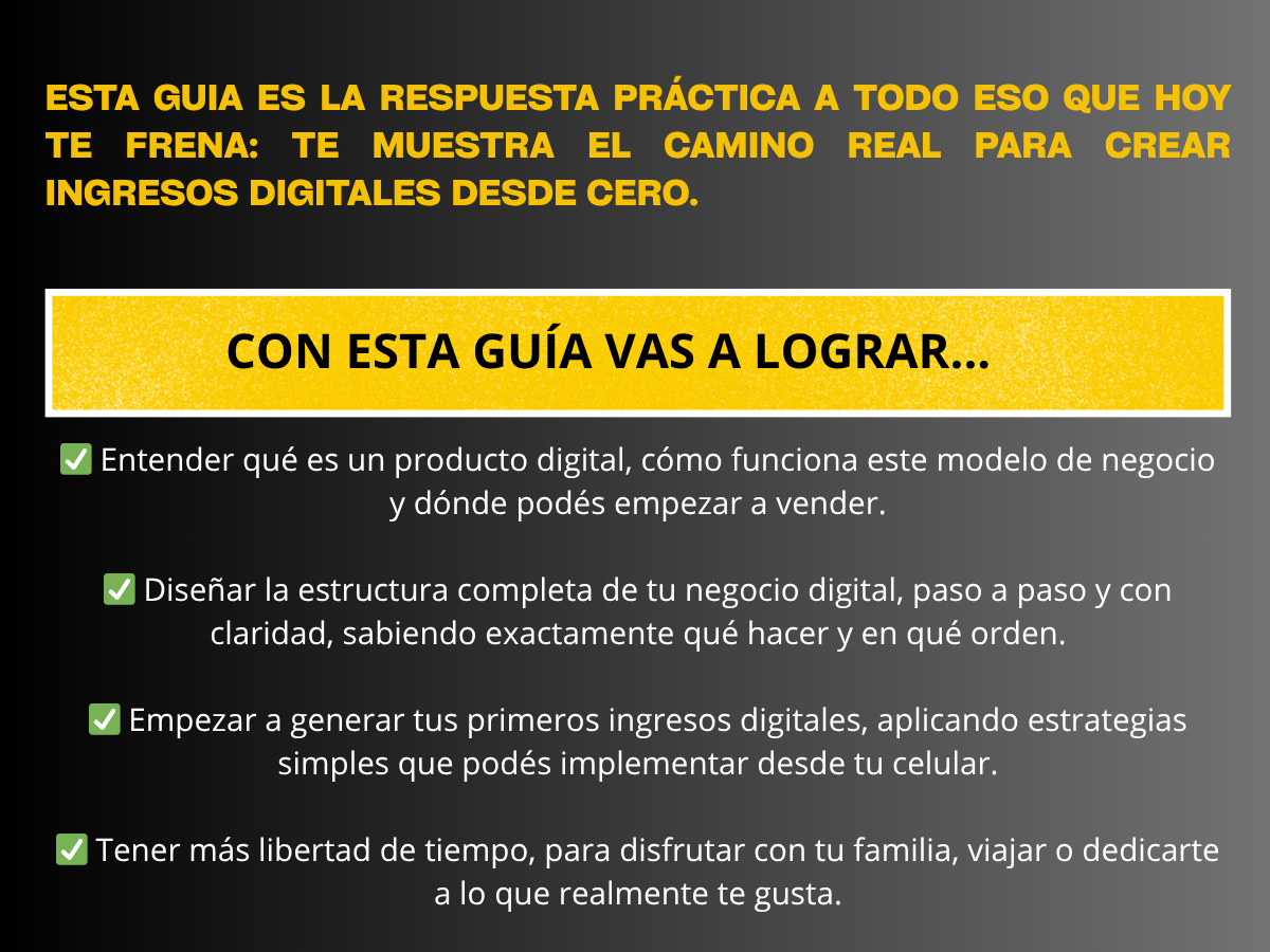 Es un método paso a paso para entender qué son los productos digitales, cómo se venden y cómo puedes empezar, incluso si no tienes experiencia en marketing, redes